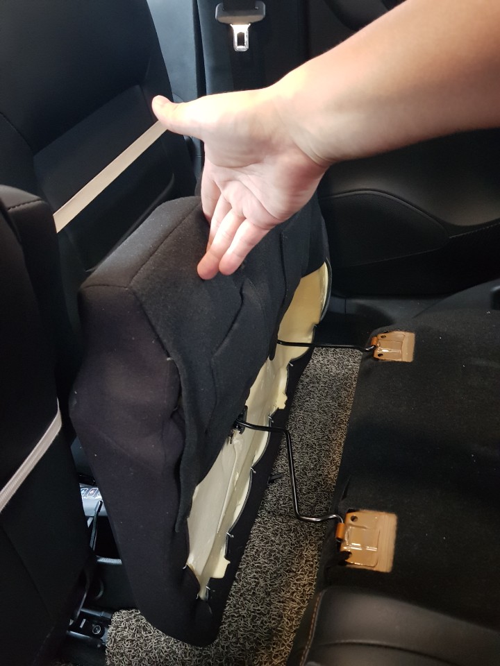 폴딩버튼을 위로 재껴 살살 좌석을 빼냅니다. 좌/우측으로 나누어 빠집니다. 빼실때 내부 스크래치가 나지 않도록 조심하세요.