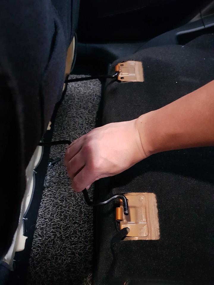 2열 등받이 시트는 15미리 스페너로 표기된 세 귀퉁이에 볼트 너트를 풀어줍니다. 가운데만 너트고 양 끝은 볼트 입니다.