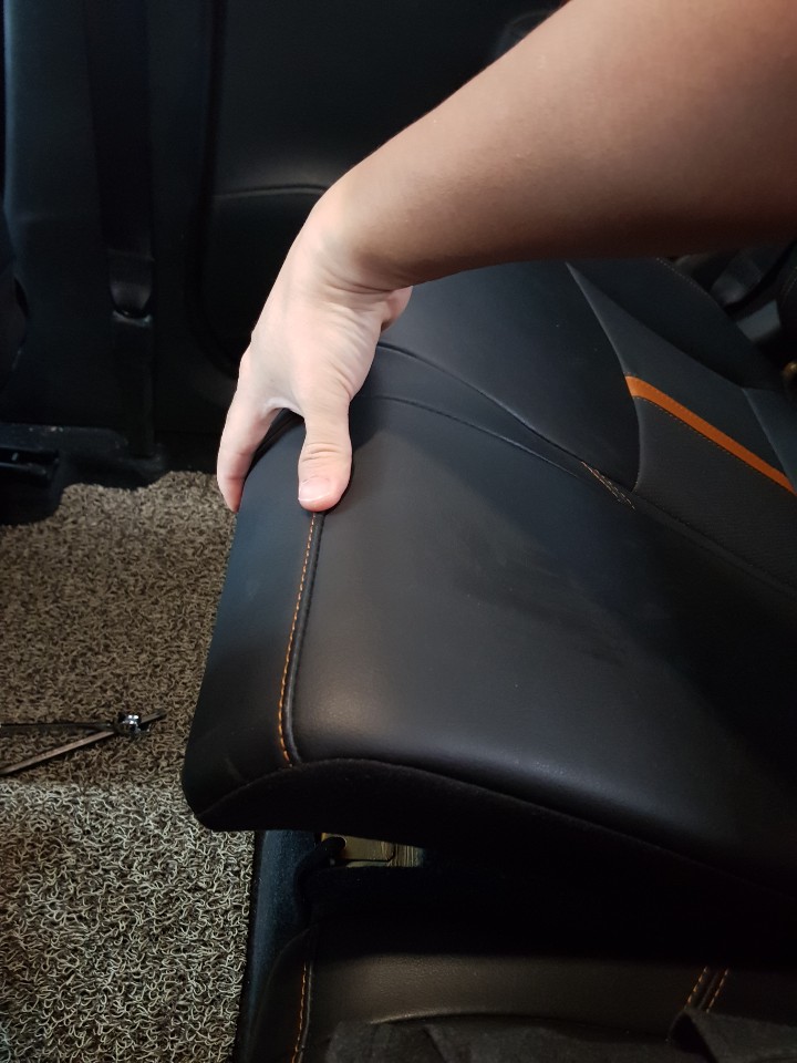 2열 보조석쪽 이네요. 뒷좌석 엉덩이 부분 앞쪽을 손으로 들어 올리면 이렇게 들려 집니다.